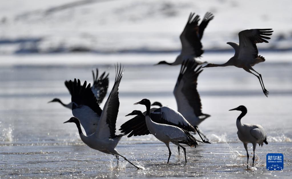 早春時(shí)節(jié),在西藏拉薩市林周縣境內(nèi)越冬的黑頸鶴開始為飛往藏北高原產(chǎn)蛋做準(zhǔn)備。黑頸鶴是國(guó)家一級(jí)保護(hù)動(dòng)物。據(jù)了解,近年來(lái),西藏自治區(qū)多措并舉實(shí)施生態(tài)建設(shè)工程,黑頸鶴數(shù)量逐年遞增,目前西藏黑頸鶴數(shù)量超過(guò)萬(wàn)只。