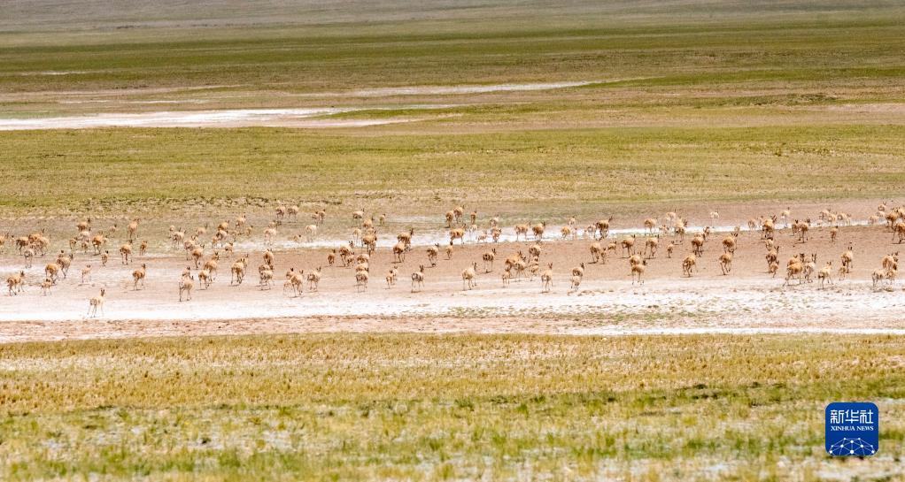 這是在羌塘國家級自然保護區(qū)內拍攝的藏羚羊(7月11日攝)。新華社記者 周荻瀟 攝
