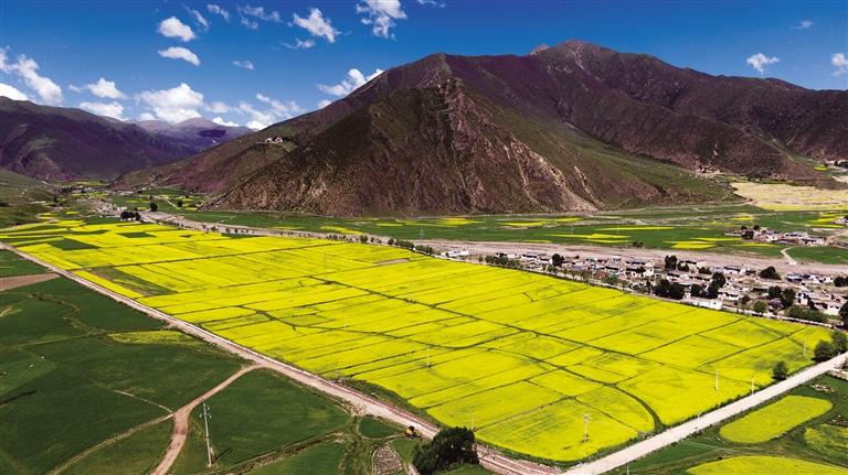 滿目金黃香萬(wàn)里,三夏好景醉千山。時(shí)至七月,雪域高原上大片油菜花盛開(kāi)。近年來(lái),拉薩市墨竹工卡縣借助小油菜,全方位、多維度、立體化展示“三產(chǎn)融合”發(fā)展成果,展陳當(dāng)?shù)靥厣幕偷赜蝻L(fēng)情,推介旅游資源,吸引廣大農(nóng)牧民參與到農(nóng)、旅、文融合發(fā)展中來(lái),吃上“旅游飯”,不斷鞏固拓展脫貧攻堅(jiān)成果同鄉(xiāng)村振興有效銜接。