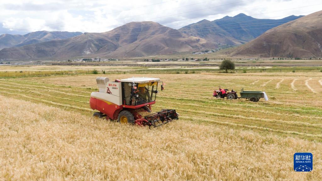 目前,西藏各地進(jìn)入秋收時(shí)節(jié)。西藏拉薩市墨竹工卡縣農(nóng)民在積極防疫的同時(shí),抓緊收割青稞,確保顆粒歸倉(cāng)。