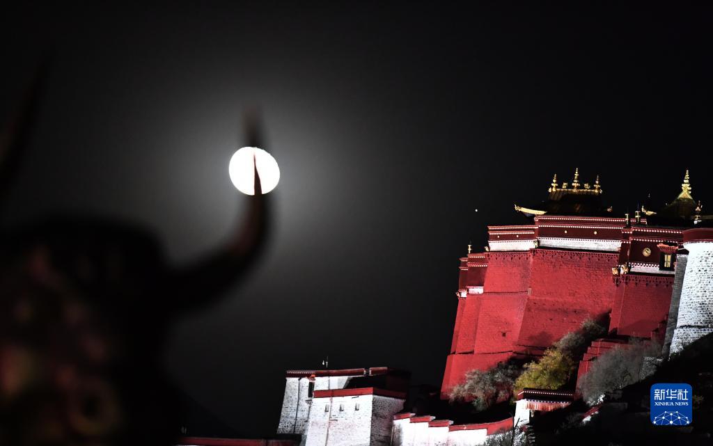 11月11日晚,一次賞心悅目的火星合月亮相天宇。這是在西藏拉薩市布達(dá)拉宮附近,記錄下的這幕“星月童話”。新華社記者 覺果 攝