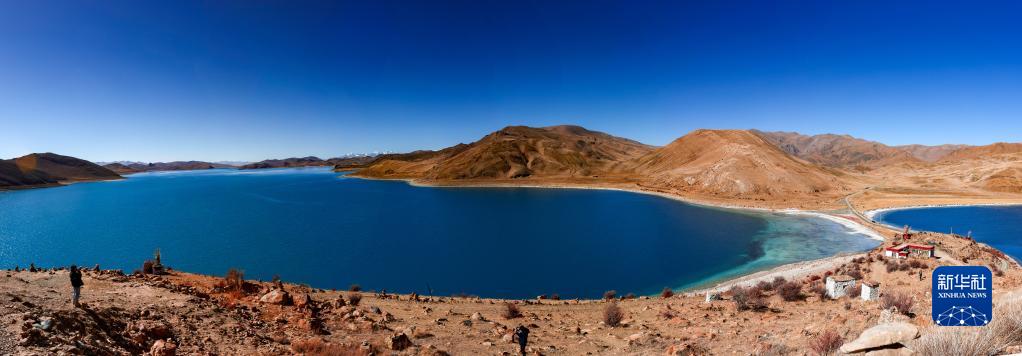 在日托寺俯瞰羊卓雍錯(cuò)(拼接照片,12月11日攝)。新華社記者 姜帆 攝