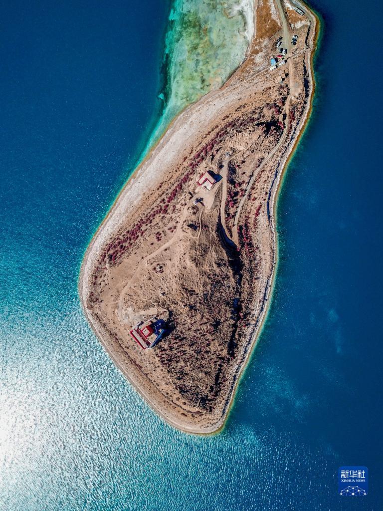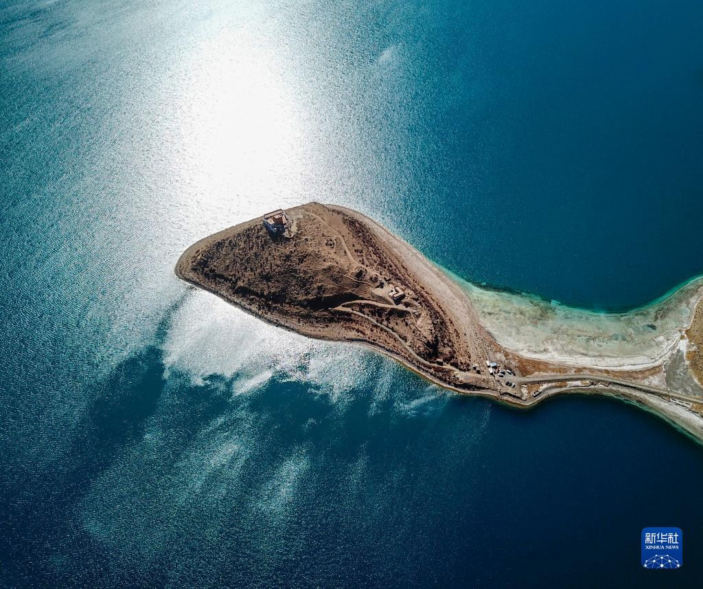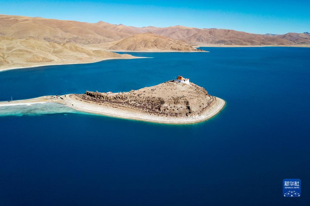 坐落于羊湖北岸一座半島上的日托寺(無(wú)人機(jī)照片,12月11日攝)。新華社記者 姜帆