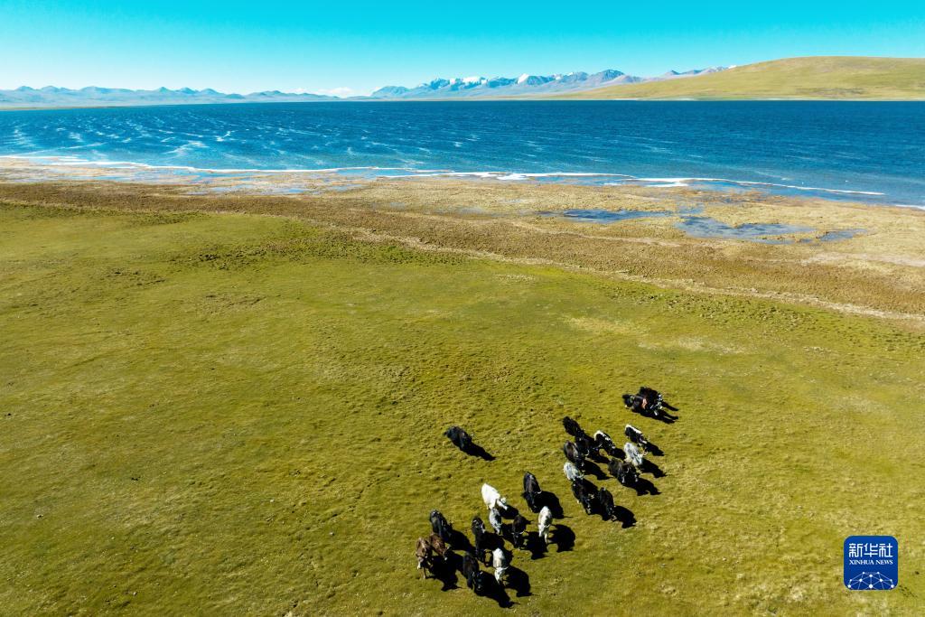 打加錯湖畔的羊群、牛群(8月30日攝)。新華社記者 劉文博 攝
