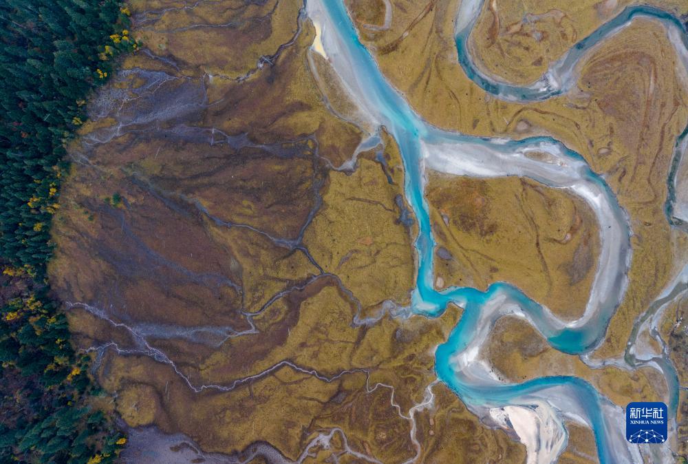 這是在林芝工布江達(dá)縣拍攝的景觀(無人機(jī)照片,10月28日攝)。新華社記者 姜帆 攝