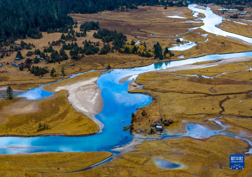 時(shí)值金秋,西藏林芝市秋色已濃,黃葉與初雪交織,流水并雪山輝映,景色如詩如畫。