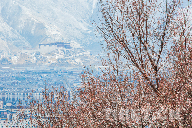 圖為從拉薩市北郊山坡上的帕崩崗遠眺布達拉宮。