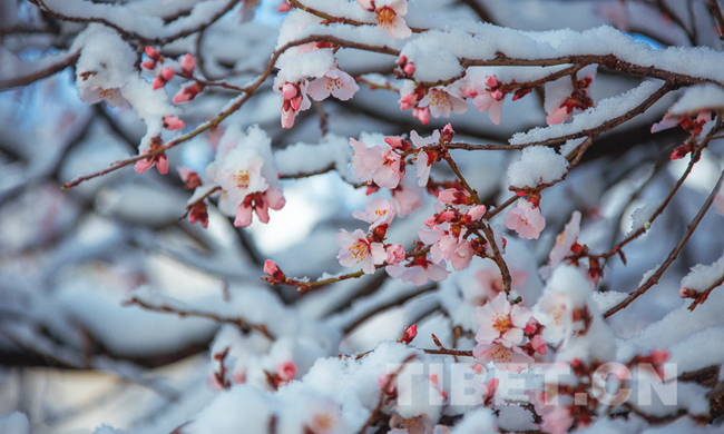 中國西藏網訊 近日來,當朋友圈被西藏林芝盛開的桃花瘋狂刷屏之際。在海拔3650米的拉薩,一場雪在一夜間悄然把拉薩銀裝素裹。拉薩市北郊山坡上的帕崩崗數(shù)十棵遒勁的野生山桃樹已經吐露花蕊,桃花在白雪的映襯下,愈發(fā)鮮艷動人。(中國西藏網 圖、文/趙耀)