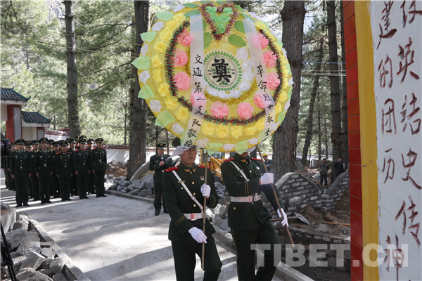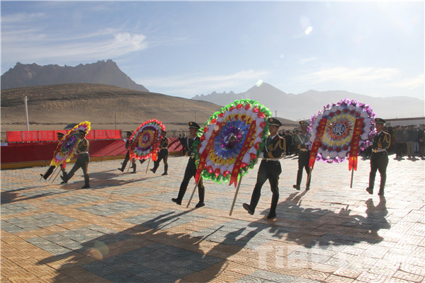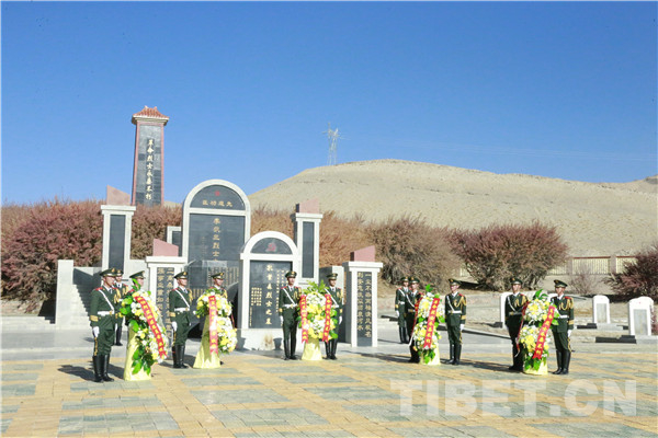 圖為駐阿里官兵向革命烈士敬獻花圈。攝影:李海峰