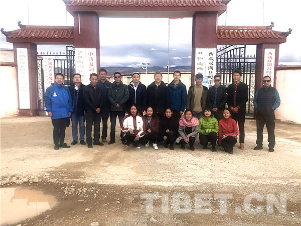 初步考慮,將在未來實(shí)施幾百戶、上千人的移民搬遷,先把老人和孩子遷移到海拔低一些的地方。圖為作者和調(diào)研組同志與雙湖縣嗄措鄉(xiāng)干部合影。