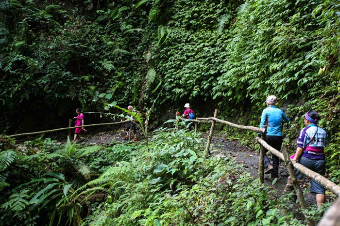 徒步愛好者穿越墨脫縣。