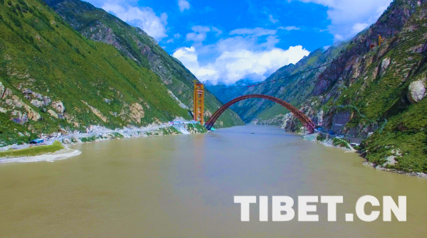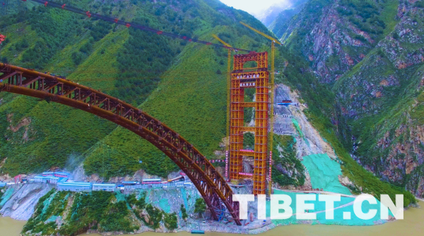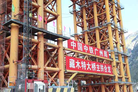 藏木特大橋位于西藏加查縣安饒鎮(zhèn)桑加峽谷內,地處海拔3350米的山地,主橋橫跨雅魯藏布大峽谷,水深66米,大橋采用430米中承式鋼管混凝土拱,拱高112米,是首座跨過雅魯藏布江的鐵路橋梁。