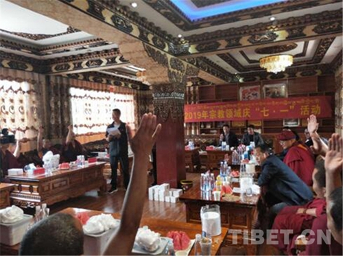 舉行升國旗唱國歌儀式。7月1日上午十點整,巴宜區(qū)統(tǒng)戰(zhàn)民宗、工商聯(lián)黨員干部、駐寺黨員干部、寺廟僧尼、珠曲登村和簡切村村民共70余人在珠曲登寺舉行升國旗儀式,雄壯嘹亮的國歌聲響徹全場。