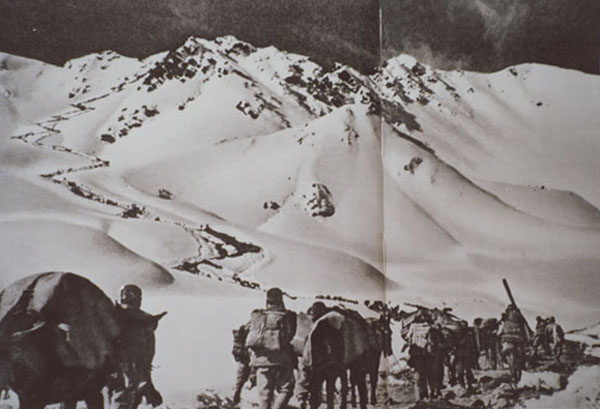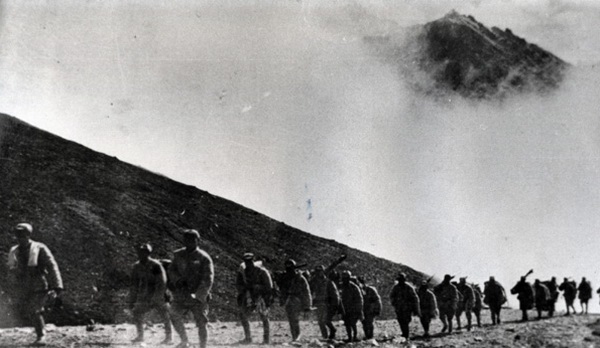 圖為進軍西藏途中的十八軍官兵。圖片來源:人民網(wǎng)