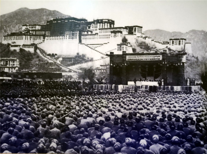 圖為1954年12月25日,在拉薩舉行的慶??挡毓罚ń翊ú毓罚?、青藏公路通車典禮大會。翻拍:李元梅