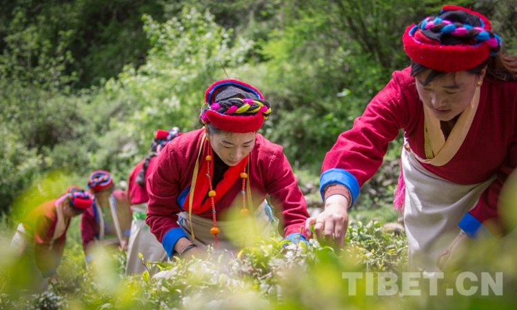 圖為勒鄉(xiāng)村民正在錯那縣勒門巴民族鄉(xiāng)茶葉農牧民專業(yè)合作社內采摘茶葉 攝影:趙耀