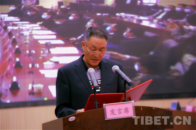 圖為國(guó)家一級(jí)演員多布杰宣讀倡議書 攝影:趙二召