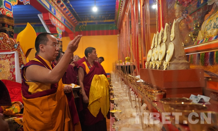 圖為十一世班禪在熱堆寺向佛像敬獻(xiàn)哈達(dá) 攝影:王淑