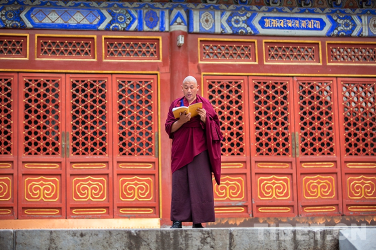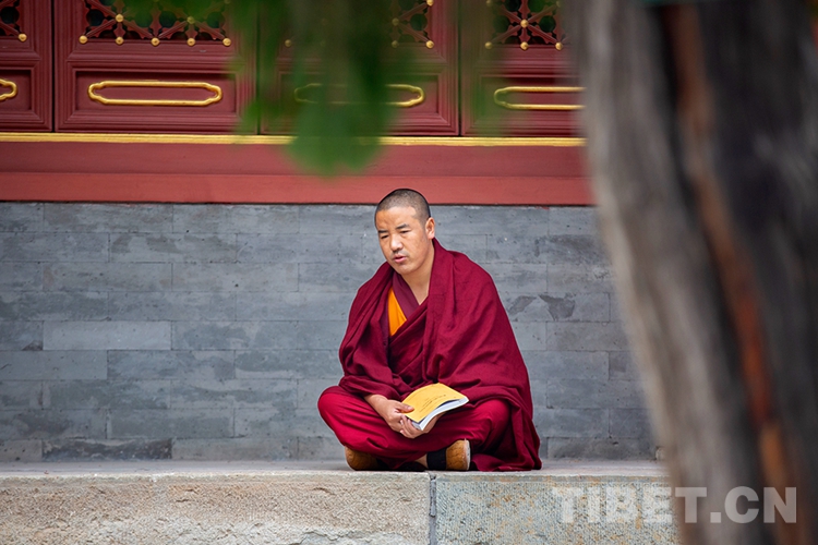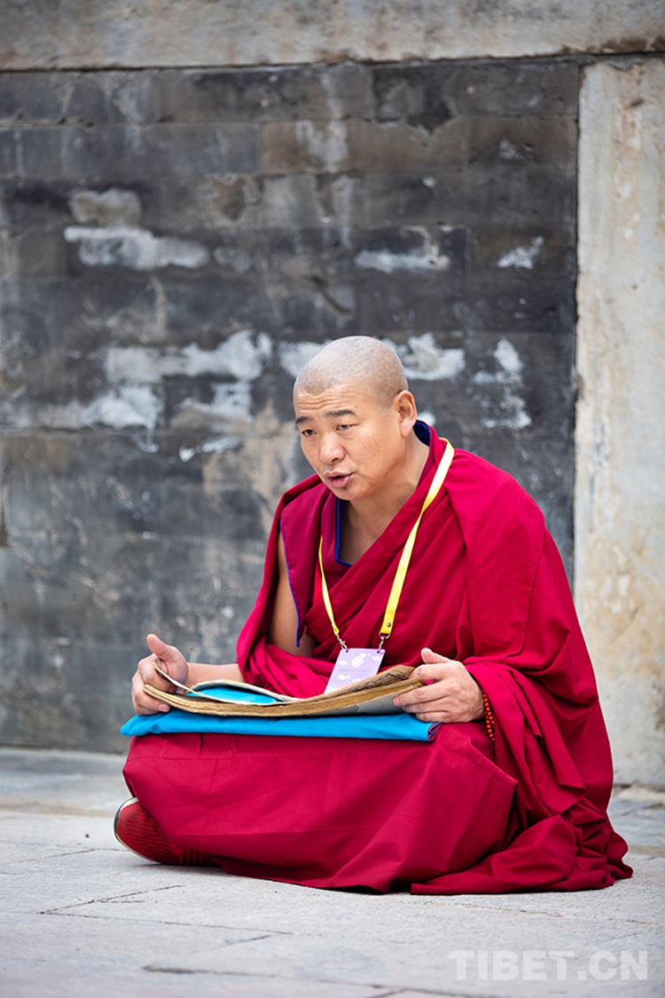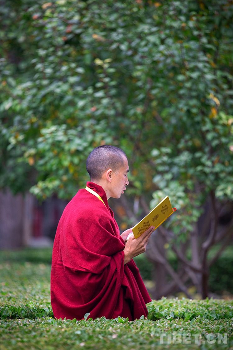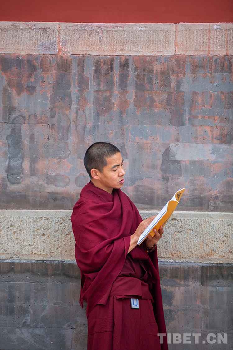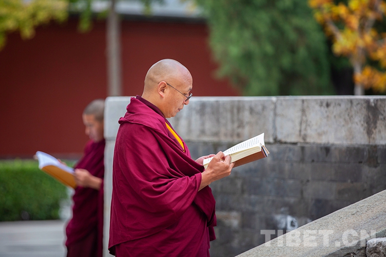 中國(guó)西藏網(wǎng)訊 10月29日,深秋的清晨,位于北京西黃寺的中國(guó)藏語系高級(jí)佛學(xué)院內(nèi),古柏蒼蒼,清凈肅穆。還有半個(gè)小時(shí),2020年藏傳佛教第十六屆“拓然巴”高級(jí)學(xué)銜畢業(yè)考試辯經(jīng)考試就將準(zhǔn)時(shí)開始。等待參加辯經(jīng)考試的學(xué)僧們,正在西黃寺大殿前誦經(jīng),抓緊時(shí)間為考試進(jìn)行最后的準(zhǔn)備。大家或席地而坐,或立定一隅,或踱步前行,梵唱聲聲,余音繞梁。(中國(guó)西藏網(wǎng) 攝影/許娜 編輯/周晶)