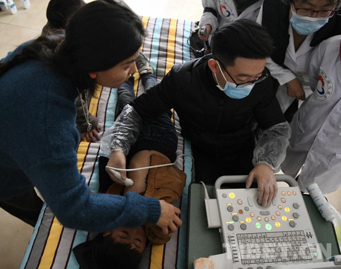 醫(yī)療隊(duì)和志愿者們不顧舟車勞頓和高原反應(yīng)的不適,認(rèn)真地對(duì)每一位前來篩查的小朋友進(jìn)行詳細(xì)的詢問和認(rèn)真的檢查。對(duì)于有疑似癥狀的患者則現(xiàn)場利用從北京帶來的先進(jìn)設(shè)備進(jìn)行彩超診斷,并耐心和每一位患者家屬進(jìn)行交流和講解,在每個(gè)工作細(xì)節(jié)上精益求精。
