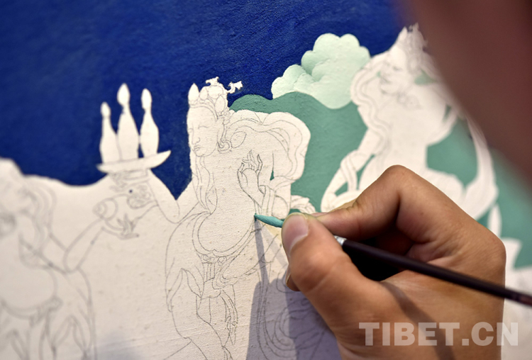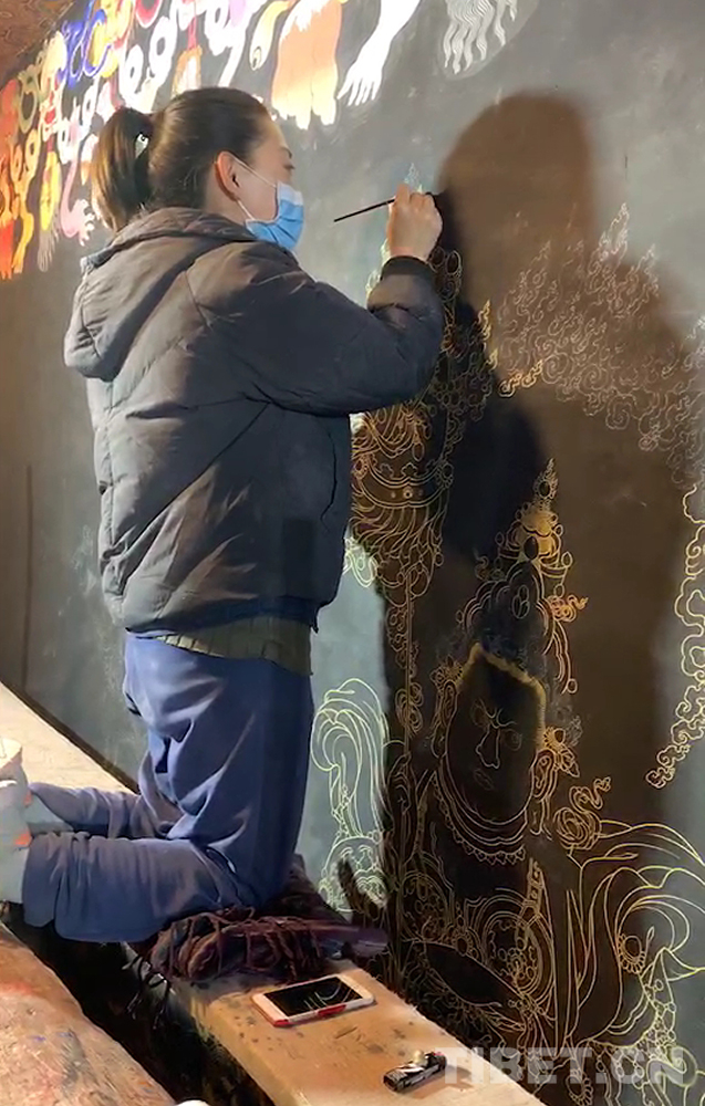 白描、勾線、上色……每一個步驟重復(fù)得熟稔于心,尼瑪倉拉進入了畫院高級班學(xué)習(xí)。去年,她更是得到畫院老師們的認(rèn)可,加入到功德林寺壁畫修復(fù)的行列。