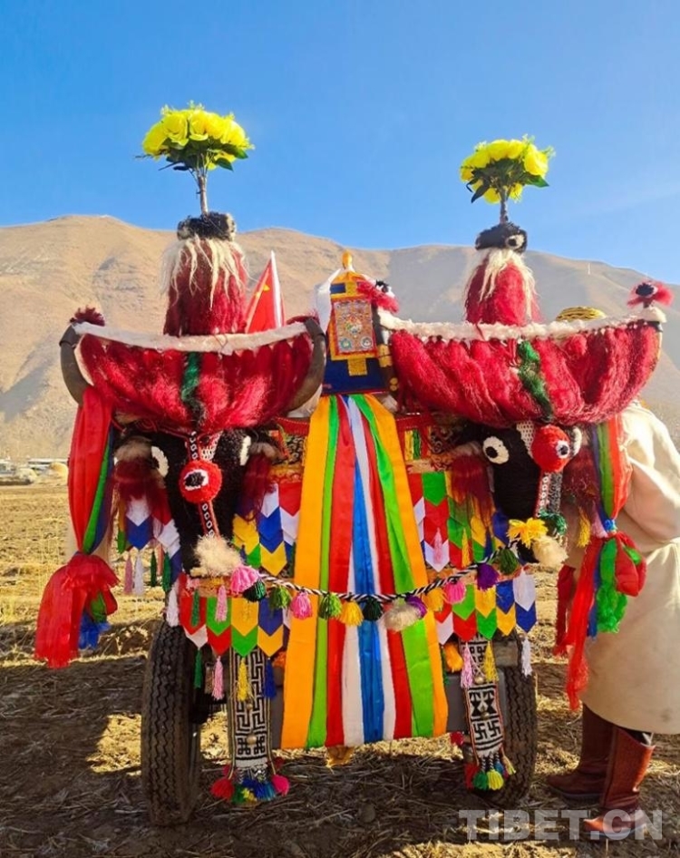 圖為拉薩市達(dá)孜區(qū)白納村春耕儀式上裝扮一新的“鐵?!?攝影:卓嘎