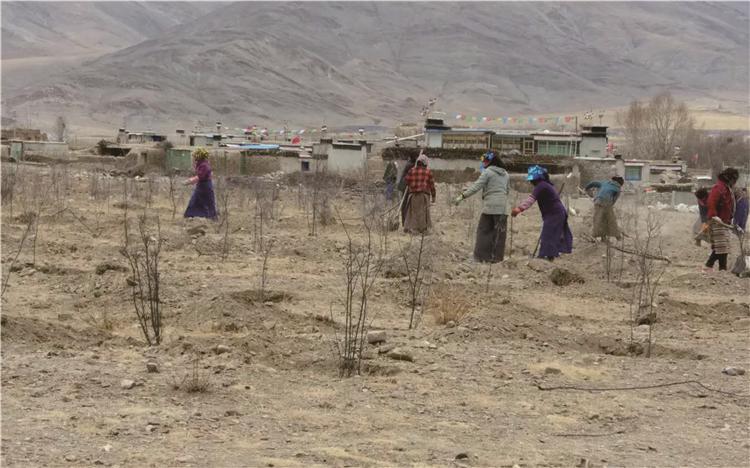 圖為隆子縣農(nóng)牧民群眾種植沙棘樹