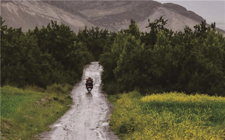 圖為護(hù)林員騎著摩托車巡邏護(hù)林