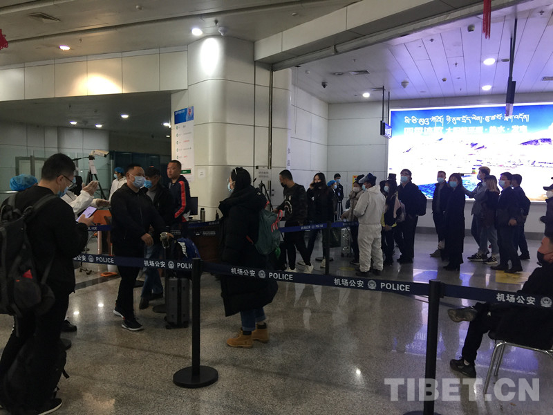 圖為貢嘎機(jī)場防疫檢查