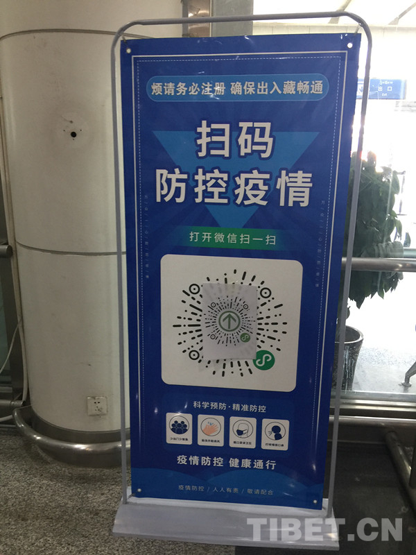 圖為貢嘎機(jī)場疫情防控掃碼標(biāo)示