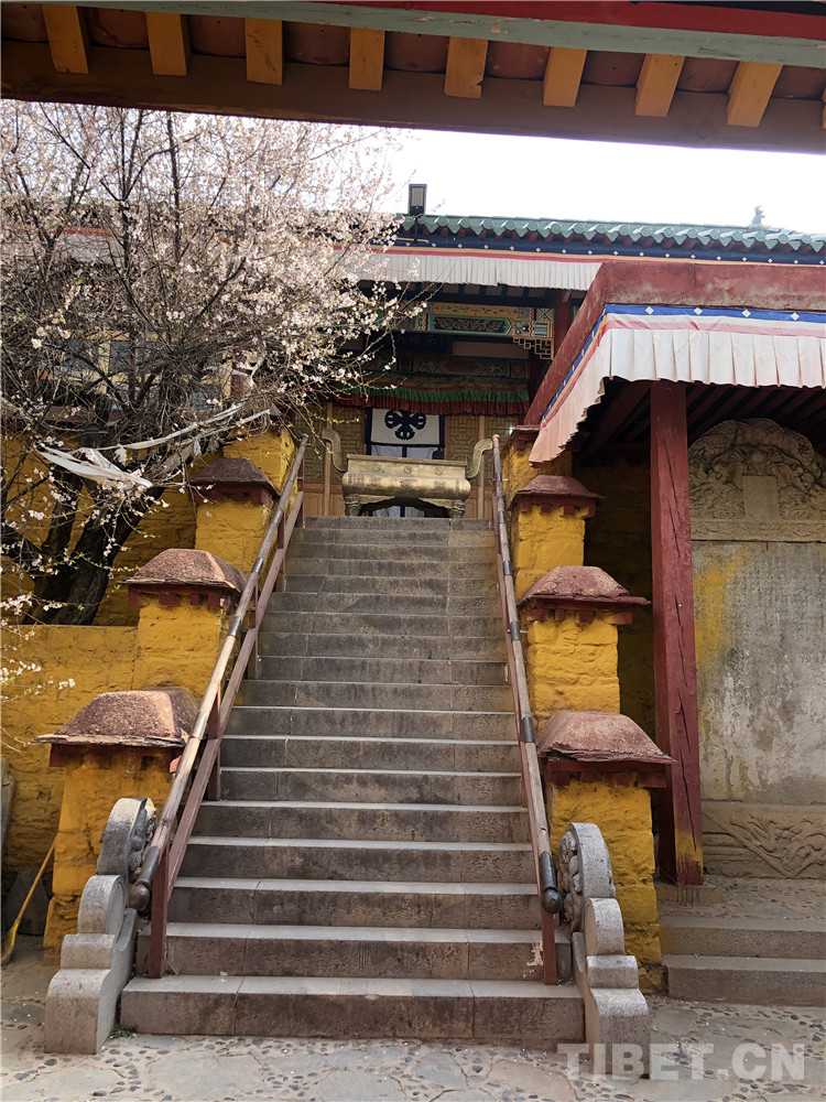 這段碑文充分表明了,清朝中央政權(quán)對西藏地方的守護和管理。也表現(xiàn)出建廟立碑者大將軍??蛋驳男亟蠛蜌馄?。在看碑文時,腦子里浮現(xiàn)出那場發(fā)生在18世紀的戰(zhàn)爭,清朝大將軍??蛋猜暑I(lǐng)滿漢蒙藏各民族組成的騎兵,刀劍相錯、血雨腥風(fēng)的畫面。一抬頭,廟中院子里卻靜謐異常,只有那株開滿花的桃樹,散落幾片花瓣,似乎在隨我一同追憶和祭奠這段歷史中的高光時刻。這段歷史中充滿了各種有益于我們這個時代的精神內(nèi)核,不畏艱險保家衛(wèi)國、各民族兄弟同仇敵愾、對共同民族英雄的認可等,這些都凝聚在這個安靜的上午,這座名字很獨特的小廟之中。抬起頭,從關(guān)帝廟的正門,往外望去,整個拉薩城充滿活力和現(xiàn)代氣息地展現(xiàn)在眼前,這座寺廟的靜謐似乎正像廟中供奉的兩位英雄一樣,默默地守護著這座城市的煙火氣息。