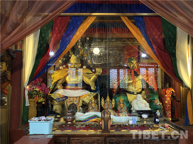其實根據(jù)這座廟的緣起,應(yīng)該稱它為“關(guān)帝廟”,后來隨著時間流逝,當(dāng)時在藏族民間沒有關(guān)帝的概念,就把里面供奉的關(guān)帝和格薩爾聯(lián)系了起來。因為兩位人物在形象和傳說故事中確實有很多共同之處。關(guān)羽號稱美髯公,拿著冷艷鋸,身著盔甲,一副高級武將的形象,而格薩爾傳統(tǒng)上也是美髯,身著盔甲,拿著長矛、盾牌、寶劍等武器。兩位在代表的人格和精神上都具有威武、嚴明、正義等意義,關(guān)羽是忠義千秋的武圣人,象征著忠義仁勇誠信的美德。而格薩爾王在藏族神話中,懲奸除惡、輔助弱小、英勇無畏,也象征了種種美德。所以藏族民間將兩位由人封神的“武圣”“武神”搞混,也在情理之中。這也從某種角度體現(xiàn)了從各個民族文化發(fā)源的民間文化,是在各民族交往交流交融中實現(xiàn)的,并在文化交融中形成中華民族共同體意識。其實拋卻民族特色,各民族的人民都是喜歡善良、討厭丑惡,喜歡忠義、厭惡奸邪,喜歡英勇、厭惡膽小,喜歡誠信、厭惡欺詐的,人性的趨善、趨美、趨真,是所有民族共同的特點和追求。