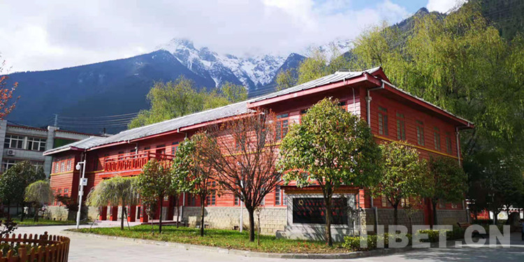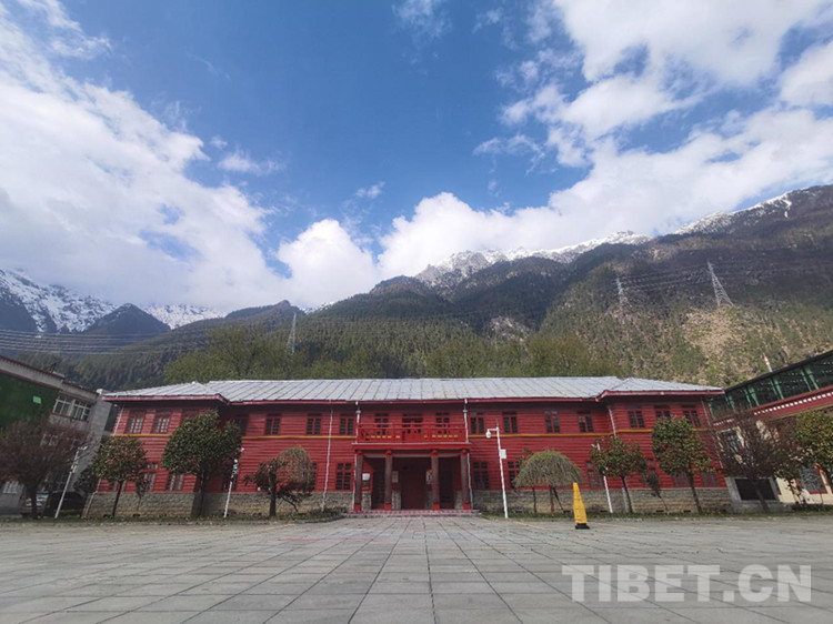 圖為林芝市波密縣扎木中心縣委紅樓近景