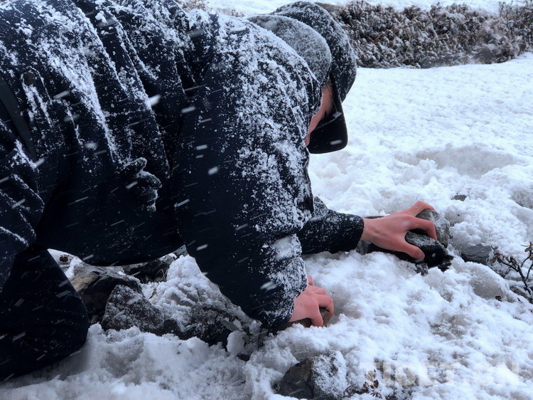 西藏日喀則邊境管理支隊(duì)貢當(dāng)邊境派出所拉青拉的執(zhí)勤民警開(kāi)始一天的巡邏工作。巡邏點(diǎn)位要穿越較厚的積雪區(qū),攀爬被冰雪覆蓋的陡坡,一路危險(xiǎn)重重,為了不增加負(fù)擔(dān),除了必要的警用裝備,大家都是最大限度的輕裝簡(jiǎn)行,連干糧和水都是定量攜帶、定時(shí)食用。巡邏車(chē)碾冰軋雪,在茫茫雪海留下一道清晰的車(chē)轍,一路荒無(wú)人煙,積雪越來(lái)越厚。在距離界樁不到兩百米的地方,巡邏車(chē)被數(shù)十厘米厚的積雪攔住去路,大家只好下車(chē)徒步前進(jìn),由于風(fēng)大路險(xiǎn),民警們只能彎著腰手腳并用匍匐著前行,隊(duì)伍里只能聽(tīng)到沉重的喘息聲和腳踏積雪咯吱聲。一百多米的路走了二十分鐘,最終到達(dá)界樁,大家來(lái)不及休整,立刻展開(kāi)觀察、警戒、檢跡記錄。積雪覆蓋的界樁旁,巡邏民警整齊列隊(duì),面向國(guó)旗,緊握右拳,朝著國(guó)旗莊嚴(yán)敬禮:“邊境有我,請(qǐng)祖國(guó)放心!”