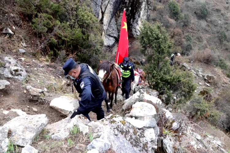 6月,絨轄邊境派出所民警們帶領(lǐng)護(hù)邊員,頂著零度以下的氣溫和超強(qiáng)紫外線,采取步行與騎馬相結(jié)合的方式,相互協(xié)同配合行進(jìn),對邊境重要通外山口要道、易繞便道、抵邊牧區(qū)、蟲草采挖點(diǎn)等進(jìn)行實(shí)地踏查。對臨時疫情防控點(diǎn)人員補(bǔ)給各類物資,對邊境前沿有無人員抵邊痕跡,邊境沿線道路通行情況等進(jìn)行詳細(xì)堪查。