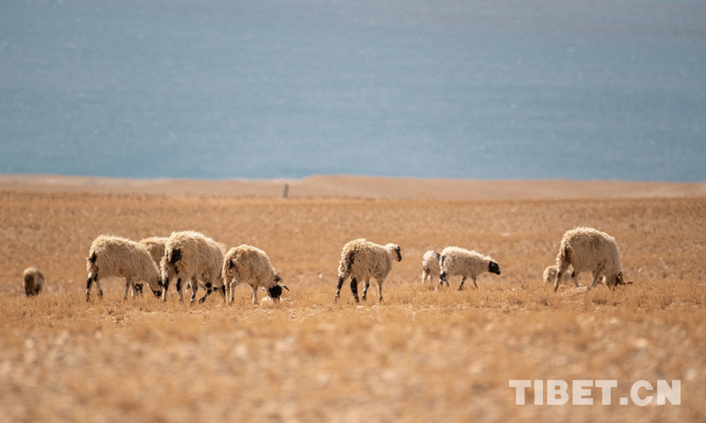 圖為納木錯旁的羊群 攝影:趙耀