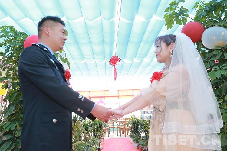 中國西藏網訊 西藏有多美?就像郭哲稱贊自己的愛人一樣:只應天上有,世間本來無。正是在移民管理警察守護的這片大美雪域邊關,西藏自治區(qū)阿里邊境管理支隊日松邊境派出所的民警郭哲與自己的新娘王從琬攜手走進了婚姻殿堂。