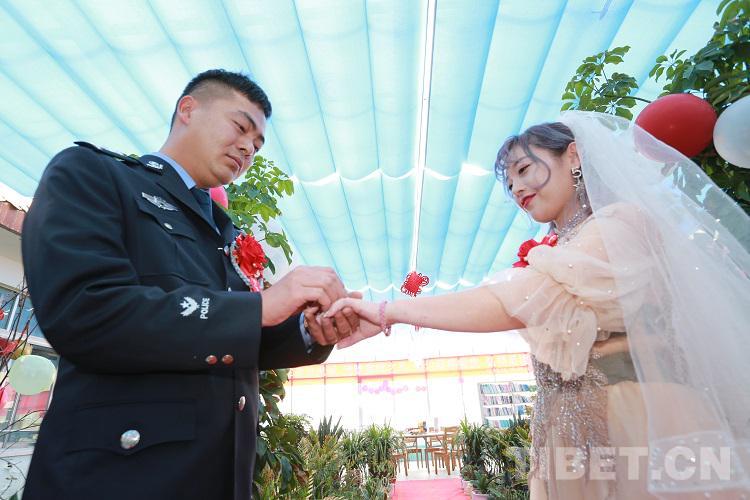 “今天能在警營里完成婚禮,非常的激動。結婚是女人一生中最幸福的時刻,非常感謝單位的領導能給我們這樣的機會,讓我倆一起度過人生中最幸福的時刻。這次的婚禮非常的有意義,將是我們一生中最寶貴的回憶,警營讓我成為最美麗的新娘?!毙履锿鯊溺鴾I激動地說。(中國西藏網 通訊員/張拴根 記者/王佳豪)