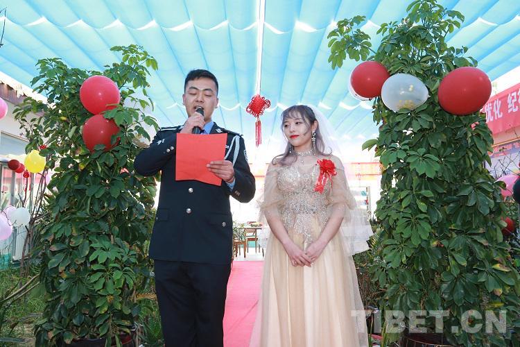 據(jù)了解,郭哲因疫情防控、邊境管控任務繁重,接到上級歸隊通知后,婚禮計劃被迫取消。阿里邊境管理支隊黨委得知該情況后,當即邀請他們在駐地舉行婚禮。