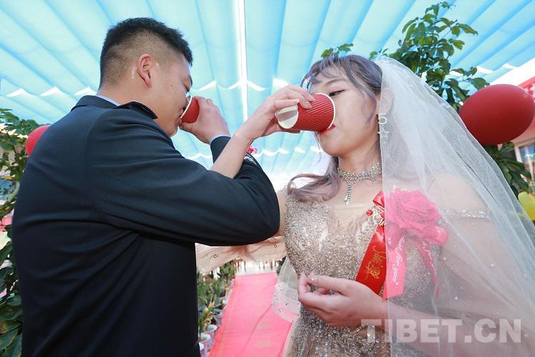 沒有鋪張豪華的迎親車隊,沒有山珍海味的結婚宴席,大家在陽關房里鋪上紅地毯、掛上彩色氣球,用鮮花和彩帶巧手裝點禮堂。繽紛的喜字掛在墻上,讓平日里莊嚴肅穆的營區(qū)變成了另一番景象,讓新娘感受到了只有警嫂才有的至高禮遇。藏青藍與婚紗白交融,浪漫與忠誠在海拔4300米演繹著動人的交響曲。