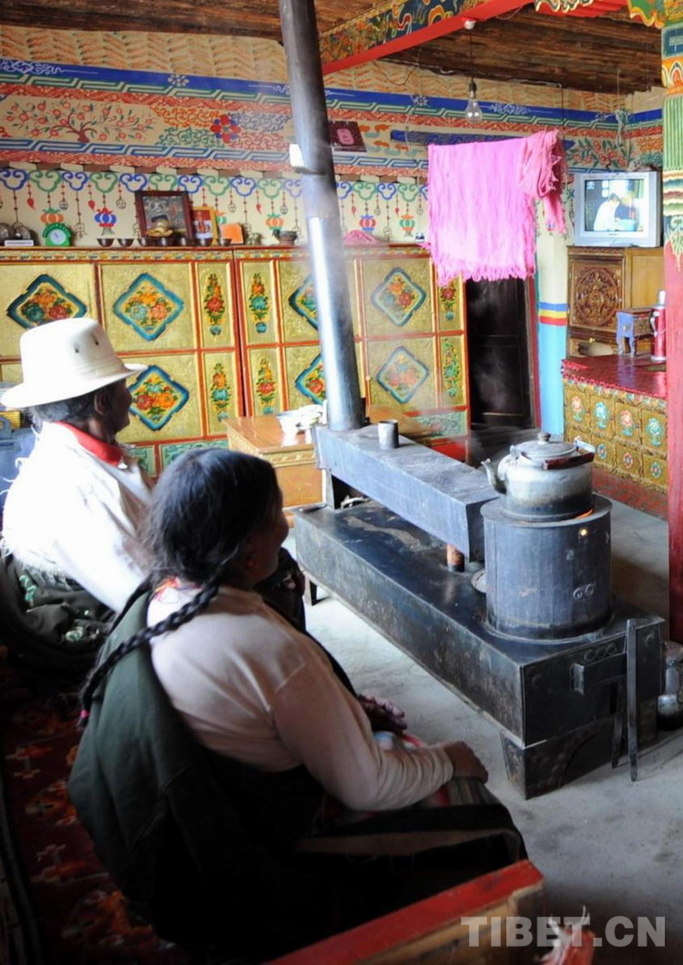 這是申扎縣申扎鎮(zhèn)三村牧民家庭利用太陽(yáng)能發(fā)電來(lái)看電視(唐召明2009年攝)
