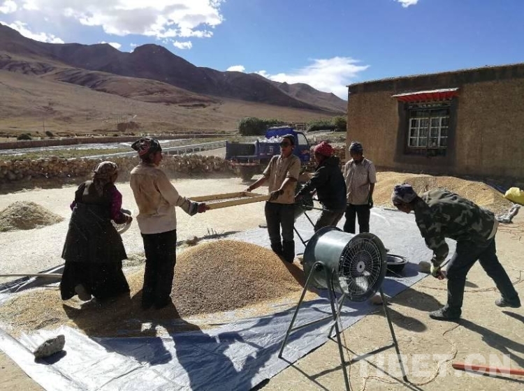 村民們進行青稞脫粒,喜獲豐收