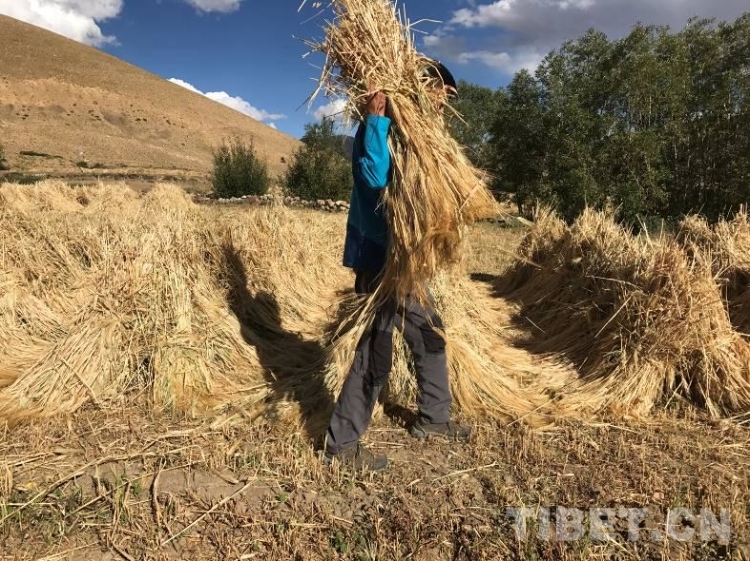工作隊根據(jù)在前期深入群眾家中和田間地頭了解到的“孤困寡”等人群在秋收中存在勞動力緊缺等問題,號召全體駐村隊員和村黨員干部組成青稞秋收黨員志愿服務隊自2017年9月13日起,對村孤寡戶、缺乏勞動力戶及特困戶進行秋收幫扶,僅用3天就完成困難戶的收割,解決了他們勞力緊缺的燃眉之急。9月底,拉木堆村的秋收工作已經(jīng)進入收尾階段。村民們都說,今年因為有收割機,收割時間比去年縮短了兩天。當全村408畝青稞全部收割完畢,堆置田地中晾曬。聽說今年糧食產(chǎn)量預計將比上年增收10%左右,再創(chuàng)新高,從干部到群眾,人人樂開了花。