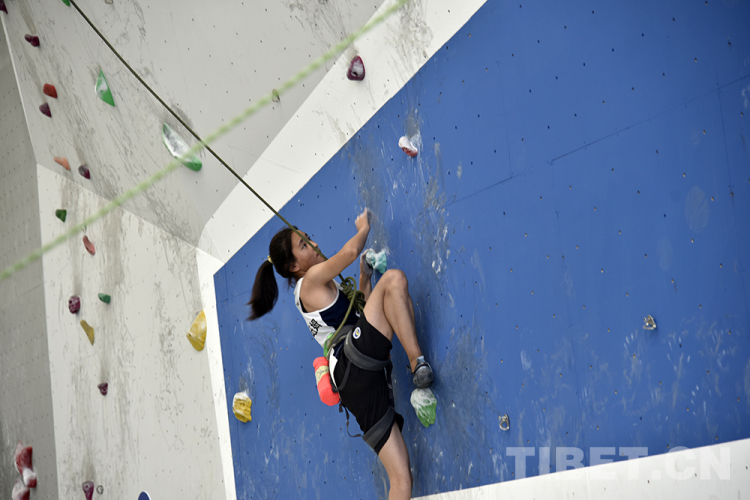 圖為專業(yè)運動員進行攀巖表演 攝影:王媛媛