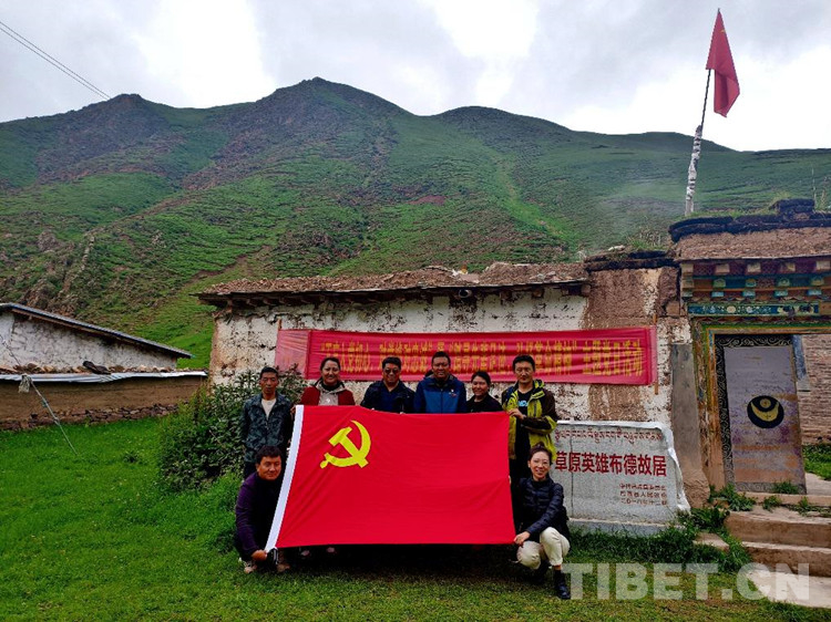 我們在布德故居接受了一堂生動的黨史教育。當結束參觀,走出故居門時,我們一下子更加領悟到眼前的村莊、山川、河谷為什么如此寧靜、美好而又詳和的真正原因了。在大家提議下,便展開黨旗,在“草原英雄布德故居”前合影,這是一次最難忘的黨日活動。當上車離開時,我們與頓珠扎西同志和其家人依依不舍。英雄布德是我們人生路上的一座豐碑和榜樣,將照耀我們的行程,增強我們的斗志,不忘初心,牢記使命,繼續(xù)前行。(中國西藏網(wǎng) 文/馮智 本文系中國藏學研究中心“那曲市民族交往交流交融史實調研組”供稿)