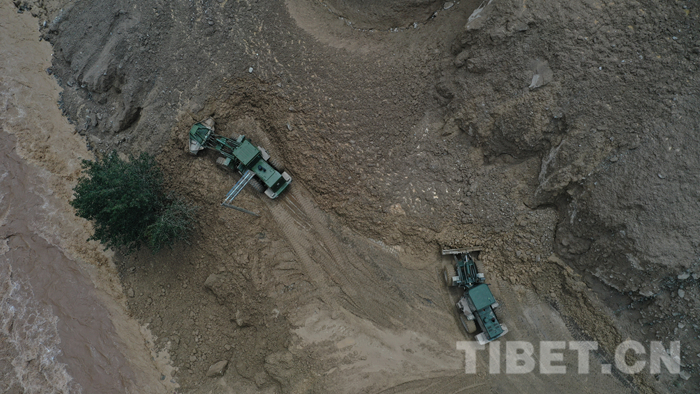 圖為該支隊救援官兵正在對川藏線怒江溝泥石流災(zāi)害進(jìn)行清理