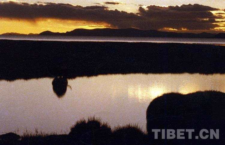 圖為出現(xiàn)在藏北無人區(qū)黃昏時分的美麗奇觀(唐召明1991年攝)