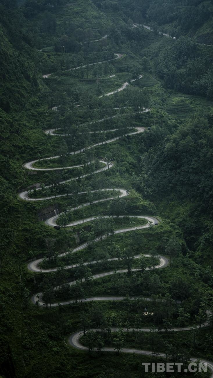 中國(guó)西藏網(wǎng)訊 俯瞰貴州省黔西南州晴隆縣,晴山千峰翠,隆地萬(wàn)物華,二十四道拐如蛟龍一般盤(pán)踞在高山深谷間,蔚為壯觀。