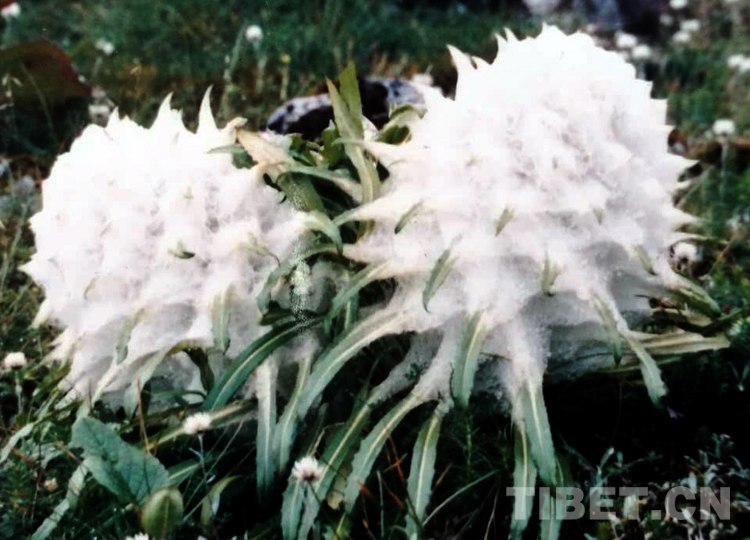 1988年盛夏,我來到雙湖辦事處(現(xiàn)雙湖縣)西亞爾雪山,飽覽了雪蓮的風(fēng)姿。它長著密密的葉子,全身披掛白色的長長的棉毛,宛若棉球。有趣的是,它棉毛交織,形成了無數(shù)的“小溫室”,創(chuàng)造了自身的小氣候。白天,高原上火辣辣的陽光對(duì)它好像特別偏愛,它從陽光吸收的熱量超過周圍的土壤和空氣。到了夜間,它又施展抵抗寒冷的特殊本領(lǐng),溫度下降的很緩慢。自我保護(hù)的本領(lǐng)使它能有效地保暖御寒,防止水分蒸發(fā),而滿身長長的棉毛又是一頂保護(hù)傘,使自己免遭高原強(qiáng)烈紫外線輻射的傷害。它頂端的條狀花瓣,又常常受到兩面長棉毛的保護(hù)……這些形態(tài)特征和特殊的適應(yīng)性使雪蓮能在高寒貧瘠的高山上生長、繁育、延續(xù)后代。