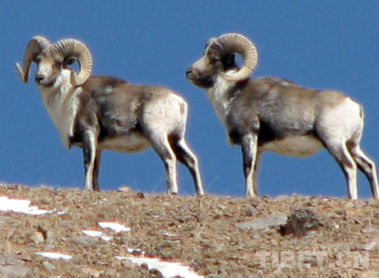 這是生活在羌塘國家級(jí)自然保護(hù)區(qū)的國家一級(jí)保護(hù)動(dòng)物西藏盤羊(唐召明2008年4月14日攝)